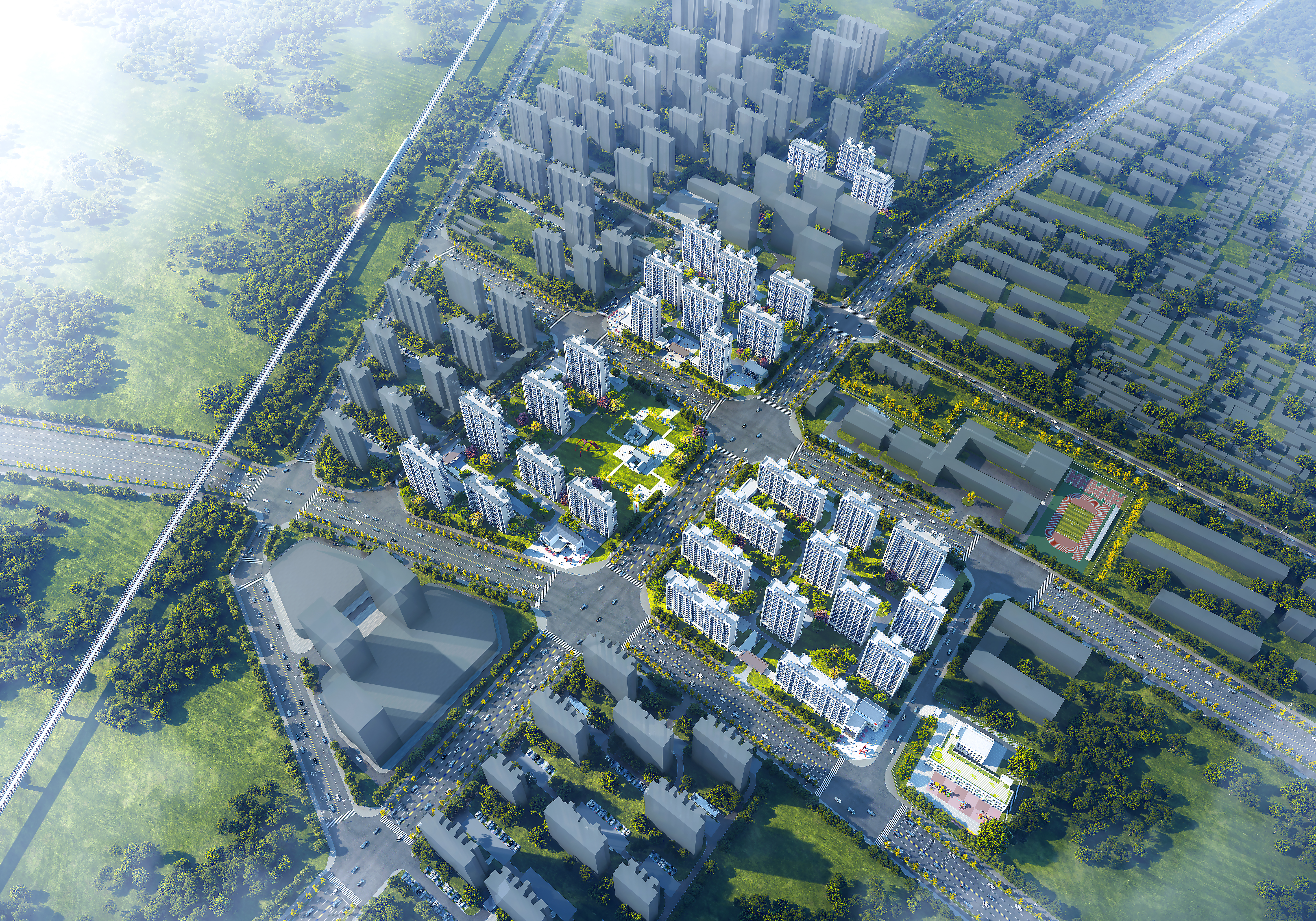 設(shè)計(jì)團(tuán)隊(duì)通過(guò)與政府有關(guān)單位、回遷居民多輪研討調(diào)研,確定項(xiàng)目建筑以“宜居、融合、綠色、現(xiàn)代”為設(shè)計(jì)原則,結(jié)合生活服務(wù)、文化娛樂(lè),功能齊全、戶型多樣的宜居條件,打造集“居住、商業(yè)、景觀空間”為一體的成熟完備社區(qū),場(chǎng)地周邊拓展綠色一星梁氏宅院城市綠地,以現(xiàn)代簡(jiǎn)約、端莊大氣建筑風(fēng)格,通過(guò)環(huán)境營(yíng)造、新老區(qū)互動(dòng)、公共場(chǎng)所升級(jí),切實(shí)滿足回遷群體需求,帶動(dòng)城市區(qū)域發(fā)展,打造石家莊張營(yíng)城市新生活,重塑回遷社區(qū)新風(fēng)貌。