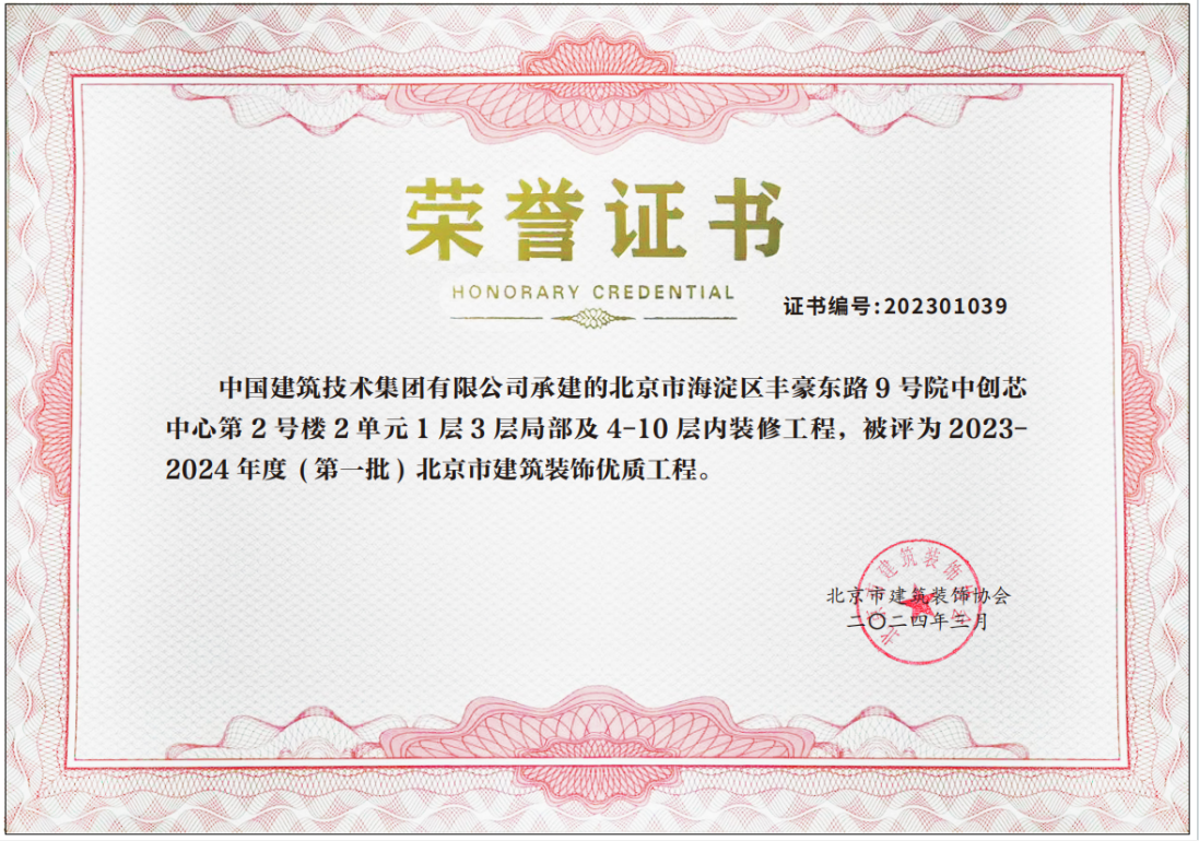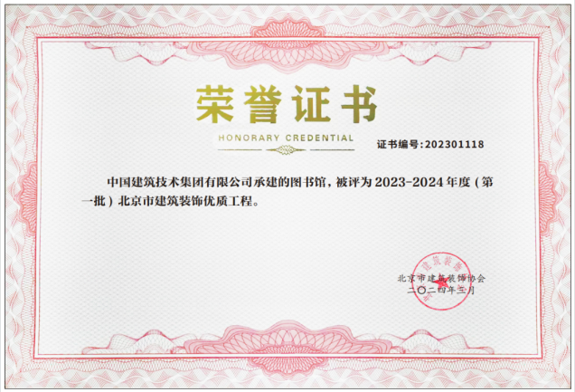 近日,由中國(guó)建技承建的麗澤商務(wù)區(qū)鼎興大廈A座房屋裝修項(xiàng)目、北京大學(xué)醫(yī)學(xué)部圖書館工程施工總承包項(xiàng)目和北京市海淀區(qū)豐豪東路9號(hào)院中創(chuàng)芯中心某公司改造項(xiàng)目榮獲2023-2024年度(第一批)北京市建筑裝飾優(yōu)質(zhì)工程獎(jiǎng)。