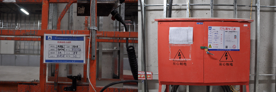 為降低因用電故障影響日常生產(chǎn)工作,臨時(shí)用電采用兩路電源供電,放射式配電,平層設(shè)置多個(gè)二級(jí)配電箱,滿足規(guī)范使用要求。
