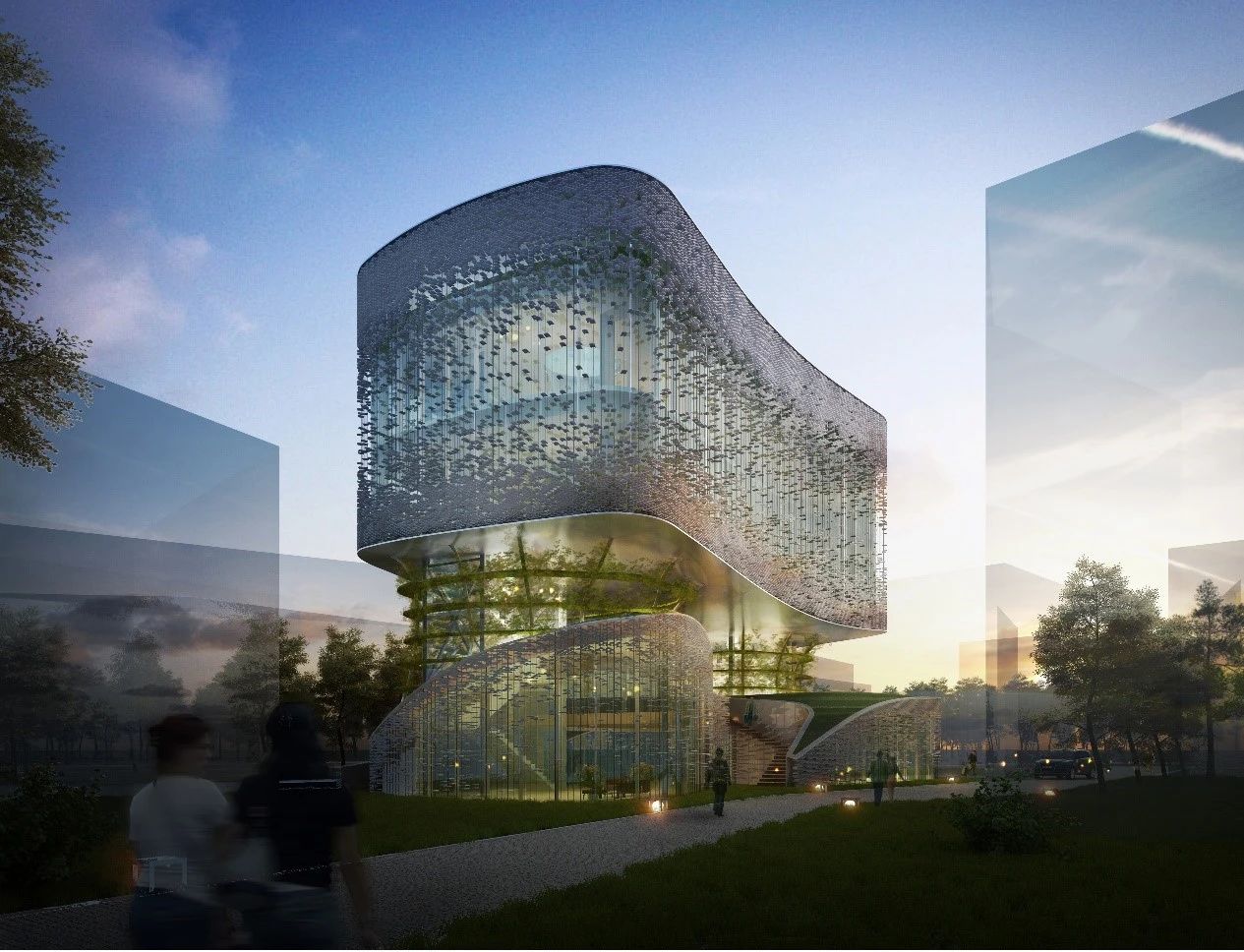 首先,科研辦公類建筑的設(shè)計(jì)必須與城市環(huán)境融洽相連,以一種高度協(xié)調(diào)的方式融入城市的肌理。通過(guò)先進(jìn)的規(guī)劃理念,科研辦公類建筑能夠與周圍環(huán)境形成巧妙的互動(dòng),創(chuàng)造出流動(dòng)而有機(jī)的城市景觀。在城市交通規(guī)劃中,科研辦公類建筑和立體交通的交匯,可賦予建筑更開放的特質(zhì),使其與城市的脈動(dòng)相融合,構(gòu)建出充滿活力的城市空間。