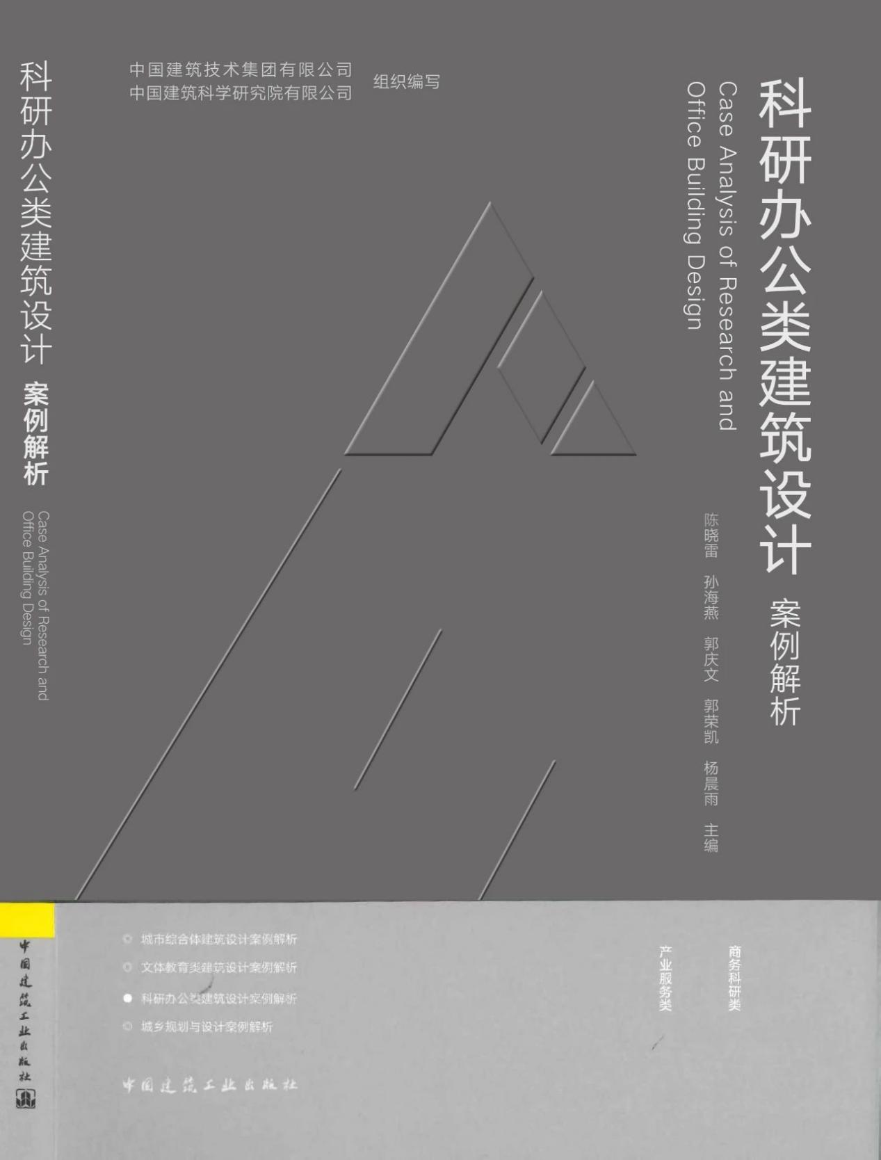 《科研辦公類建筑設(shè)計(jì)案例解析》收錄了中國(guó)建技19個(gè)科研辦公類的建筑案例,其中有13個(gè)為商務(wù)科研類項(xiàng)目,6個(gè)為產(chǎn)業(yè)服務(wù)類項(xiàng)目。