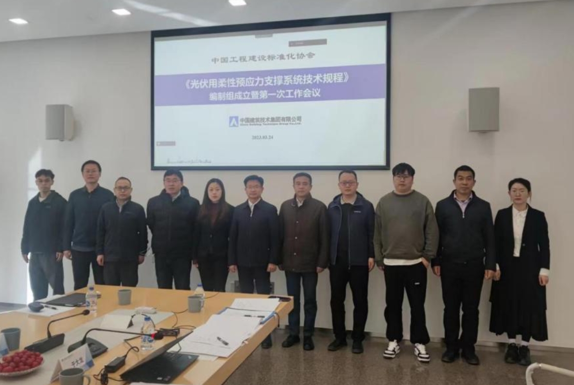 3月24日,由集團公司和中鐵上海設計院集團有限公司共同主編的《光伏用柔性預應力支撐系統(tǒng)技術規(guī)程》(以下簡稱《規(guī)程》)編制組成立暨第一次工作會議在京召開。