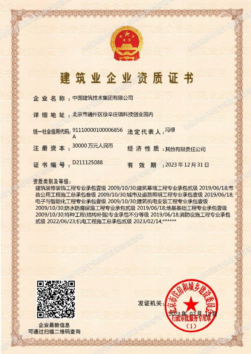 2月14日,經(jīng)北京市住房和城鄉(xiāng)建設委員會核準,集團公司申報的“機電工程施工總承包貳級資質(zhì)”成功獲批。