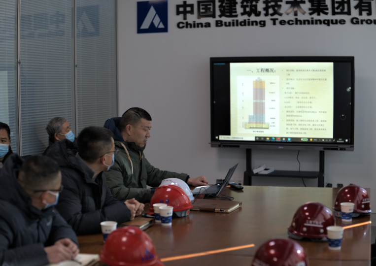 中技集團(tuán)第二工程分公司副總經(jīng)理韓玉文對(duì)鼎興大廈工程裝修項(xiàng)目概況和項(xiàng)目生產(chǎn)進(jìn)度情況進(jìn)行了匯報(bào),中國(guó)建研院和中技集團(tuán)領(lǐng)導(dǎo)一行詳細(xì)了解了項(xiàng)目特色、施工進(jìn)度、安全管理及質(zhì)量管控情況,并對(duì)項(xiàng)目部目前的整體管理給予肯定,同時(shí)就項(xiàng)目建設(shè)、安全生產(chǎn)、疫情防控等重點(diǎn)工作提出要求。