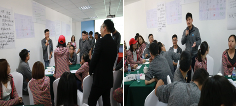 9月22日上午,在專業(yè)培訓(xùn)師的指導(dǎo)下,用貝爾賓團隊角色理論測試每位員工的團隊角色,結(jié)合該測試結(jié)果,進(jìn)行了一場充滿參與性、互動性、實戰(zhàn)性、競爭性的沙盤模擬訓(xùn)練。新員工們分組抽簽決定各自的所處的地形情況及資源狀況,通過小組合作產(chǎn)出產(chǎn)品并到統(tǒng)一的市場交易獲得效益,通過效益的多少等多重指標(biāo)衡量經(jīng)營的整體狀況。培訓(xùn)中,小組成員充分地展示出了當(dāng)代年輕人開闊的思維方式,會場熱鬧紛紛。他們思維活躍、分工有序,在充分分析內(nèi)外形勢的前提下,有效經(jīng)營,各小組均獲得了十分可觀的經(jīng)營效果,得到了培訓(xùn)團隊的一致好評,最后每個小組的精彩自我點評再次將培訓(xùn)推向高潮。會后大家意猶未盡,午餐時分依然在探討思路和方法。