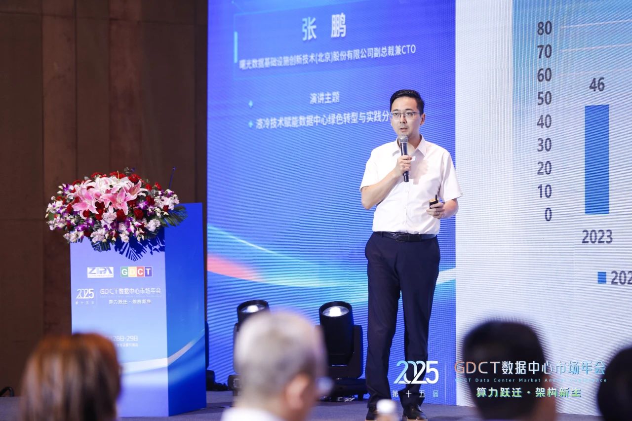 曙光數(shù)創(chuàng)副總裁兼CTO張鵬博士在會上分享了主題為《液冷技術賦能數(shù)據(jù)中心綠色轉(zhuǎn)型與實踐分享》的演講。他表示,隨著數(shù)字化進程加速,特別是人工智能技術的爆發(fā)式發(fā)展,數(shù)據(jù)中心面臨能耗攀升、散熱難題等多重挑戰(zhàn),基礎設施建設亟待變革。液冷技術作為破解這些難題的關鍵技術路徑,已成為實現(xiàn)數(shù)據(jù)中心綠色高效運行的核心發(fā)展方向。