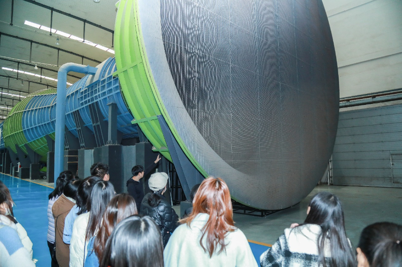 進(jìn)入實(shí)驗(yàn)室,首先映入眼簾的是藍(lán)綠相間的巨大“喇叭”,也是今天的“主角”——建筑風(fēng)洞?!按孙L(fēng)洞長96.5米,是直流下吹式大氣邊界層風(fēng)洞,此風(fēng)洞可以進(jìn)行多項(xiàng)科學(xué)試驗(yàn),為保證建筑的安全性和舒適性提供強(qiáng)大的‘后盾’。”在薛原博士的帶領(lǐng)下,參觀人員來到“喇叭口”了解風(fēng)洞動(dòng)力段的運(yùn)行原理,近距離看到風(fēng)扇葉片的構(gòu)造。沿著風(fēng)洞,接著來到中間的穩(wěn)定段,參觀人員深入了解風(fēng)洞內(nèi)部蜂窩器和阻尼網(wǎng)的構(gòu)造和重要作用。經(jīng)過風(fēng)洞的兩個(gè)實(shí)驗(yàn)段,最后來到擴(kuò)張段,在這里風(fēng)可以以更低的速度被排出。在專家的講解下,風(fēng)洞每一段構(gòu)造的科學(xué)秘密被逐漸揭開,參觀人員感受到建筑安全背后“科技屏障”的力量。