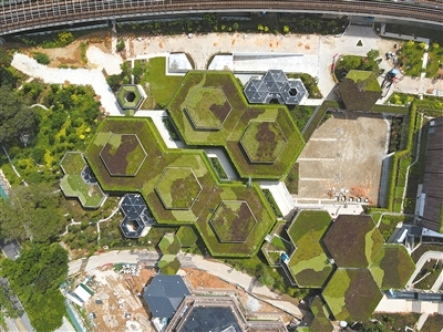 近年來(lái),新加坡注重應(yīng)對(duì)氣候變化,不斷提高建筑的環(huán)境可持續(xù)標(biāo)準(zhǔn),對(duì)綠色建筑標(biāo)志認(rèn)證設(shè)置了最高等級(jí)——綠色標(biāo)志白金獎(jiǎng)。三巴旺綜合社區(qū)中心項(xiàng)目以取得綠色標(biāo)志白金獎(jiǎng)為目標(biāo),將綠色環(huán)保理念貫穿于項(xiàng)目設(shè)計(jì)和施工的各個(gè)環(huán)節(jié)。中心的建筑屋頂實(shí)現(xiàn)了無(wú)土植物全覆蓋,在新加坡常年炎熱的氣候下,這種設(shè)計(jì)不僅外觀上綠意盎然,還可以起到降溫、吸音、降噪等作用;園林區(qū)域的降雨排水系統(tǒng)運(yùn)用石塊、碎石、植物等天然材料,將雨水匯集起來(lái)并層層過(guò)濾沉降泥沙,營(yíng)造出天然河道景象,既美觀又能凈化水源;項(xiàng)目還采用了大量預(yù)制構(gòu)件,雖然對(duì)施工精度提出了很高的要求,但可以最大程度減少施工中產(chǎn)生的建筑垃圾。