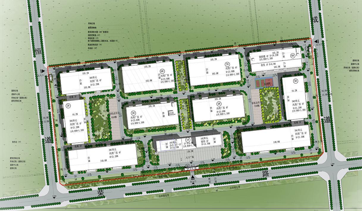 蘆臺農(nóng)業(yè)產(chǎn)業(yè)融合示范基地項目,位于蘆臺經(jīng)濟(jì)開發(fā)區(qū)富恒道東側(cè)、榮錦路南側(cè)、富成道西側(cè)、榮昌路北側(cè),是一個集設(shè)計與施工總承包于一體的發(fā)展項目。該項目的用地布局規(guī)整,形狀接近正方形,東西向長約545米,南北向?qū)捈s246米。項目南側(cè)緊鄰榮昌路,規(guī)劃有一條10米寬的城市公園綠地,周邊建筑數(shù)量有限。項目的主要建設(shè)內(nèi)容包括辦公樓、標(biāo)準(zhǔn)廠房、倒班樓、食堂、設(shè)備房、門衛(wèi)管理用房等,共計11棟建筑。其中,包含6棟新建的四層丙類標(biāo)準(zhǔn)廠房、1棟新建的三層辦公樓(局部帶有地下一層)、1棟新建的四層倒班樓(首層設(shè)有食堂)以及3棟單層門衛(wèi)房。此外,新建的附屬配套工程涵蓋了管網(wǎng)工程、道路硬化、綠化工程等。