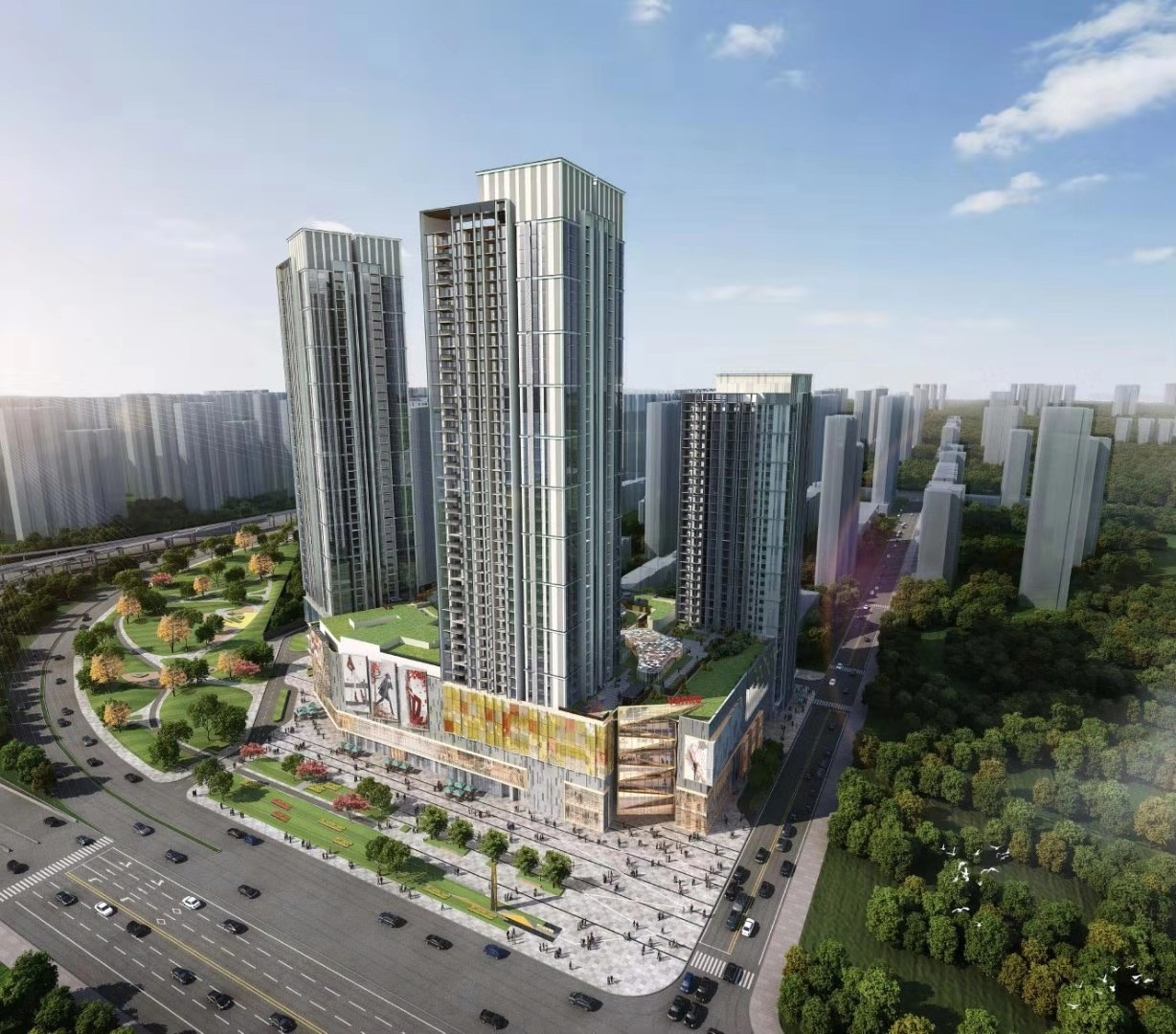 項目為西安萬科金域東郡項目三期工程,包含兩棟超高層住宅、一棟廉租房、以及一座商業(yè)綜合體。其中商業(yè)部分的浐灞印象城為萬科集團印力西安城市公司繼龍首印象城、太白印象城之后布局西北的第三座印象城。浐灞印象城從社區(qū)生活這一公共議題出發(fā),重構商業(yè)、生活、人之間的關系,通過15min便民圈的業(yè)態(tài)、社區(qū)生活理念以及寵物友好的空間等新功能,讓社區(qū)成為連接日常的樞紐,革新了西安城東的商業(yè)格局。商場已于2023年端午節(jié)盛大開業(yè),包含餐飲、影院、購物、兒童游樂等多種業(yè)態(tài),極大的方便了辛家廟片區(qū)居民的日常生活。廉租房已于2022年底交付政府,三棟超高層已于2023年11月30日交付業(yè)主。