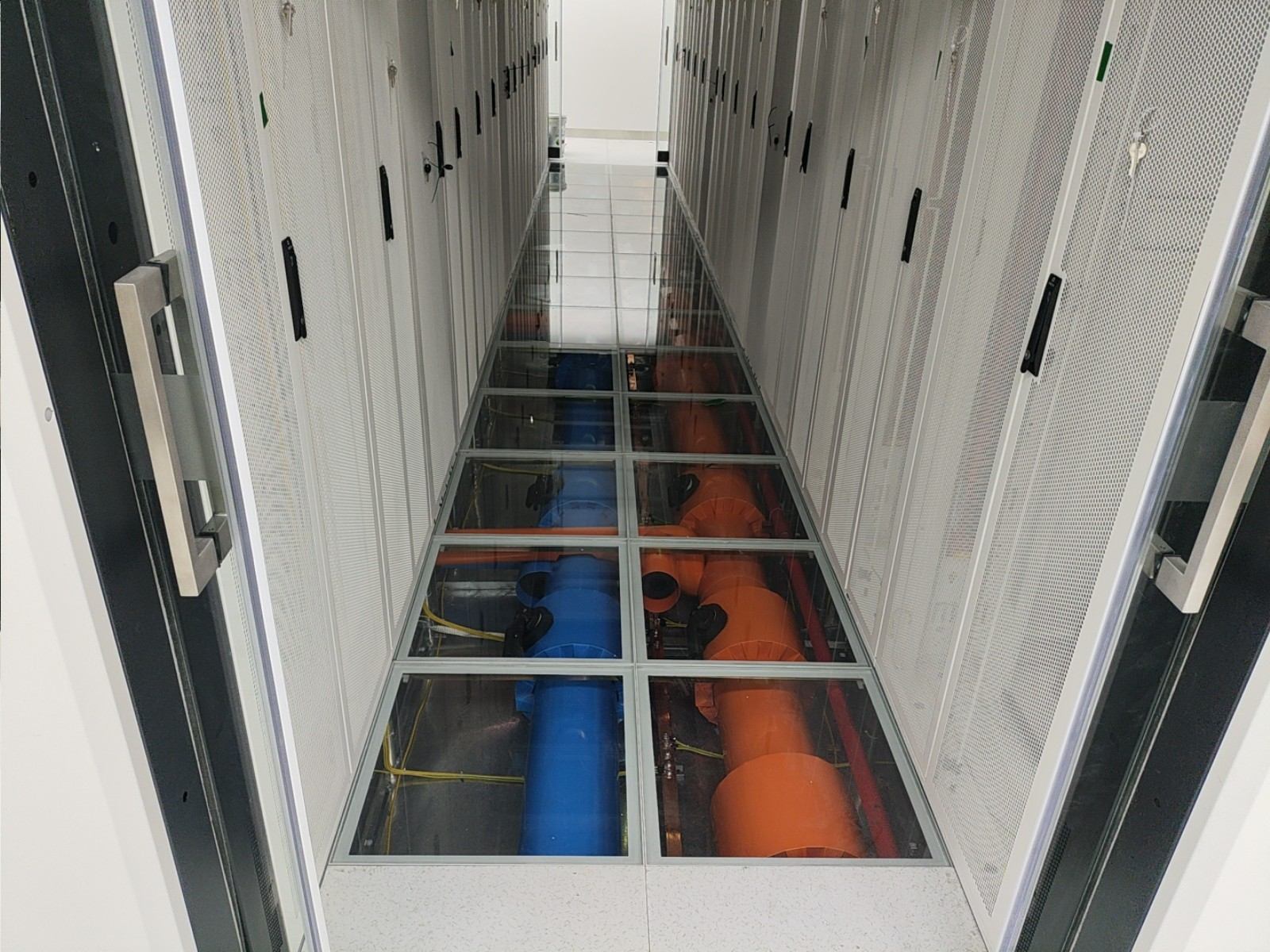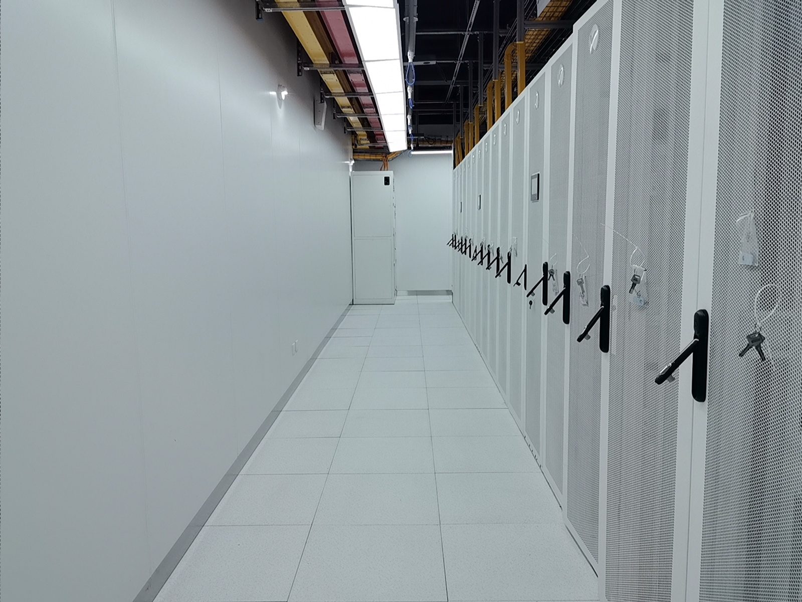 通過(guò)部署華為一體化模塊化UPS,我們實(shí)現(xiàn)了設(shè)備空間占用的顯著節(jié)約、連接線纜的減少以及系統(tǒng)可靠性的提升。維諦品牌的微模塊成套系統(tǒng),包括機(jī)柜、精密空調(diào)、動(dòng)環(huán)監(jiān)控和電池監(jiān)控等組件,不僅系統(tǒng)集成度高,而且可靠性強(qiáng),其軟件平臺(tái)的開(kāi)發(fā)響應(yīng)也十分及時(shí)。西門子的密集母線和智能小母線系統(tǒng),集成了母線測(cè)溫和在線監(jiān)控功能,進(jìn)一步增強(qiáng)了系統(tǒng)的可靠性。封閉熱通道的設(shè)計(jì),確保了系統(tǒng)擁有充足的冷量?jī)?chǔ)備,從而提高了容災(zāi)能力。封閉通道的玻璃觀察地板和內(nèi)部管道的PVC彩殼包覆,不僅保證了整體風(fēng)格的統(tǒng)一和協(xié)調(diào),還提升了美觀度。仿真測(cè)試機(jī)房3,一個(gè)280平方米的屏蔽機(jī)房,其頂面殼體設(shè)計(jì)為平頂,并且封閉熱通道采用了95吋LED顯示屏整體式移門,極大地提升了觀摩機(jī)房的視覺(jué)效果。在整體顏色管理方面,我們采用了紅/黃雙色對(duì)供配電A/B路、密集母線、智能小母線、電力電纜、PDU外殼等進(jìn)行區(qū)分,確保了清晰醒目。此外,采用彩鋼板墻面和夾心彩鋼板頂面,有效提升了機(jī)房的潔凈度和防塵能力。