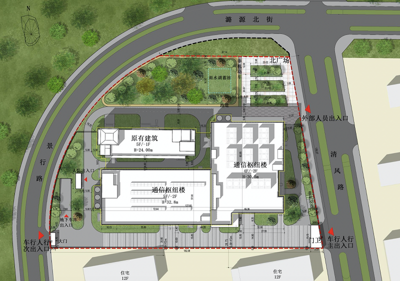 項目在保留原有通信樓基礎(chǔ)上,在南側(cè)及東側(cè)新建一座L型通信樞紐樓。項目建成后,可以滿足國際出口設(shè)備和互聯(lián)網(wǎng)安全設(shè)備擴容需求,同時打造國際一流的物聯(lián)網(wǎng)、大數(shù)據(jù)分析、云計算及各類智慧應(yīng)用基地,并為中國電信與中國移動提供機房,充分滿足城市副中心辦公區(qū)及整個城市副中心區(qū)域未來多樣化的智慧通信需求以及網(wǎng)絡(luò)安全需求,為城市副中心提供更優(yōu)質(zhì)、更便捷、更安全的全方位通信服務(wù)。