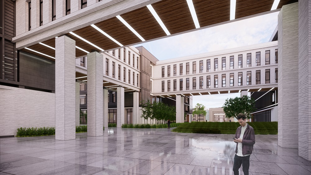 該項(xiàng)目采用“九宮格”式布局模式,由共享連廊將所有建筑聯(lián)系到一起,打造“綜合體”式教育中心,提高使用效率。