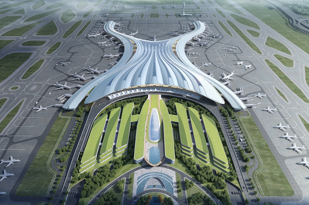 廣州白云國際機(jī)場三期擴(kuò)建工程T3航站樓采用集中式主樓+指廊式構(gòu)型,由主樓、東南指廊、西南指廊、東北指廊、西北指廊、東指廊及西指廊組成,航站樓總建筑面積為49.86萬平方米,建筑高度42.95米,整體南北方向長970米,東西寬592米。